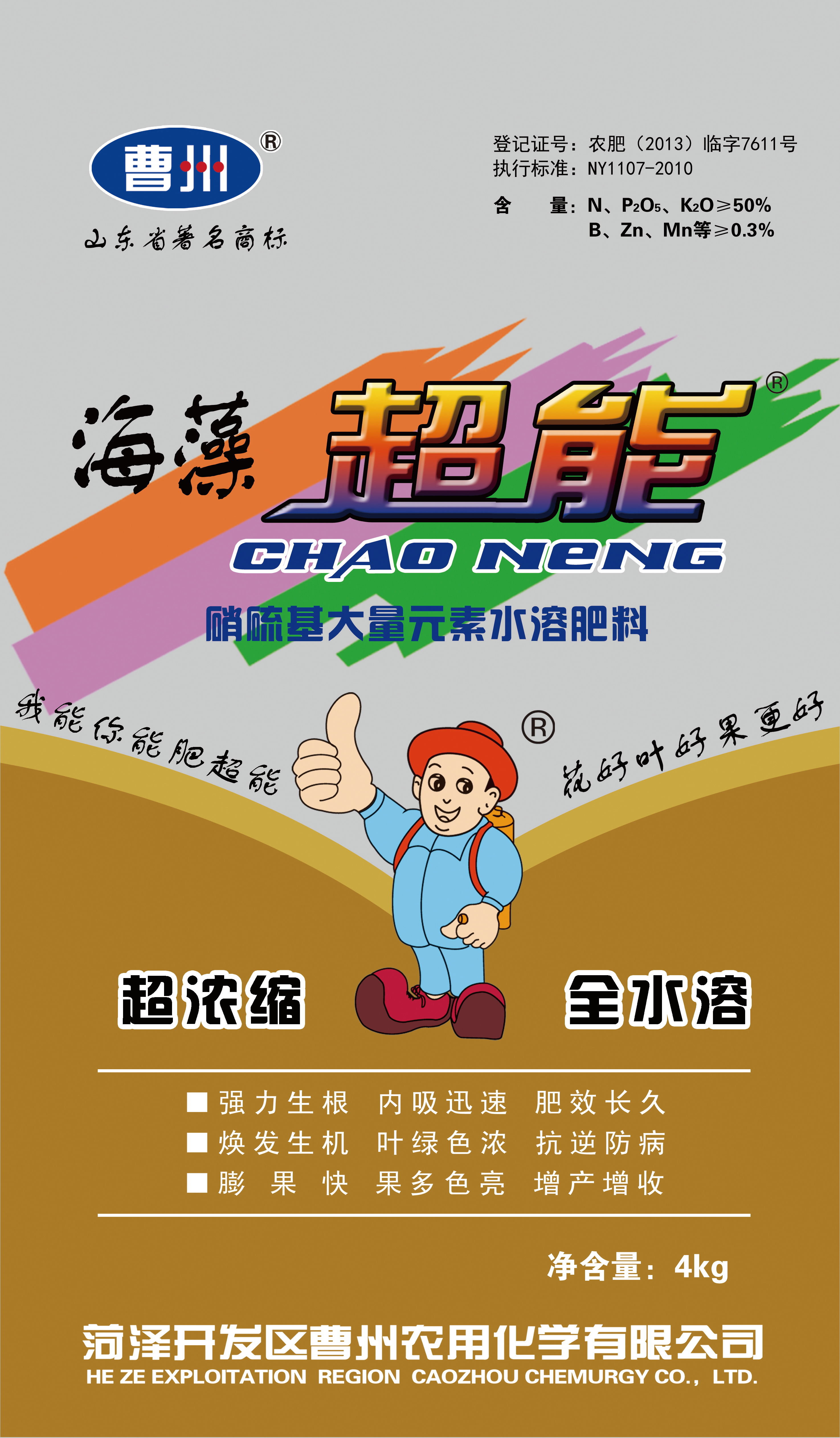 海藻超能 曹州 全水溶 大量元素 生根壮苗 花艳 叶绿 保花 保果 膨果 着色 增甜 叶面肥 滴灌肥 氮磷钾微量元素 果树蔬菜花卉大田通用