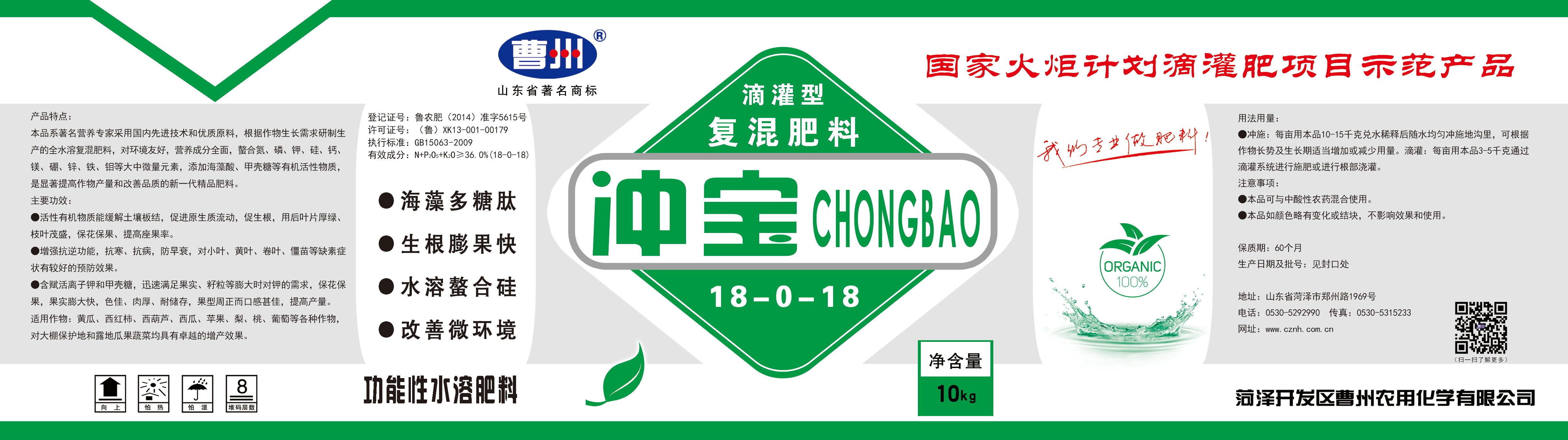 冲宝 曹州 全水溶 大量元素 生根壮苗 花艳 叶绿 保花 保果 膨果 着色 增甜 叶面肥 滴灌肥 氮磷钾微量元素 果树蔬菜花卉大田通用