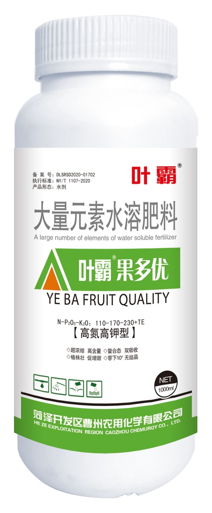 曹州 叶霸果多优 全水溶 大量元素水溶肥料 液体叶面肥 提高产量 提高果实着色 改善品质 促根壮苗 保花保果 蔬菜花卉果树大田通用1000ml/瓶