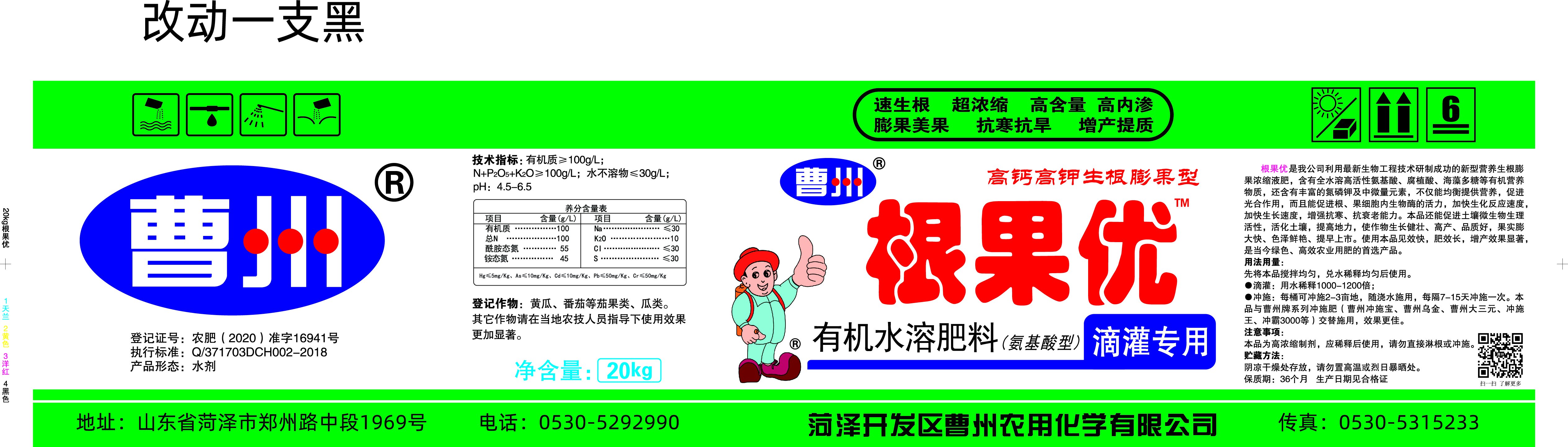 曹州 根果优 全水溶 有机水溶肥料 促进生根 壮苗 改良土壤 提高抗逆性 增产增收 蔬菜花卉果树大田通用20kg桶