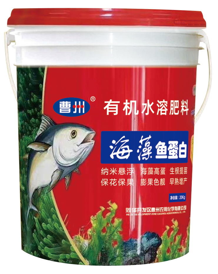 曹州 海藻鱼蛋白 全水溶 有机水溶肥料 促进生根 壮苗 改良土壤 提高抗逆性 果实膨大快 促进早熟 保花保果 膨果增亮 蔬菜花卉果树大田通用20kg/彩桶