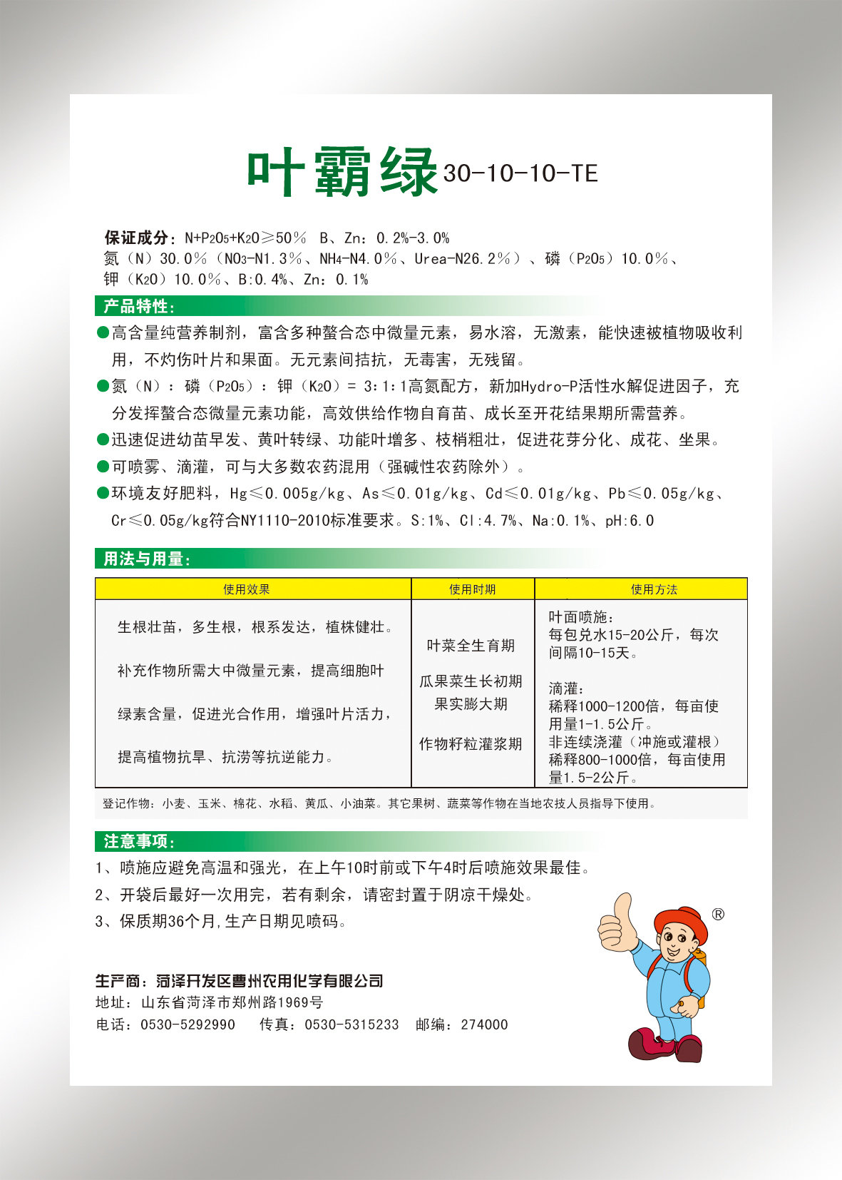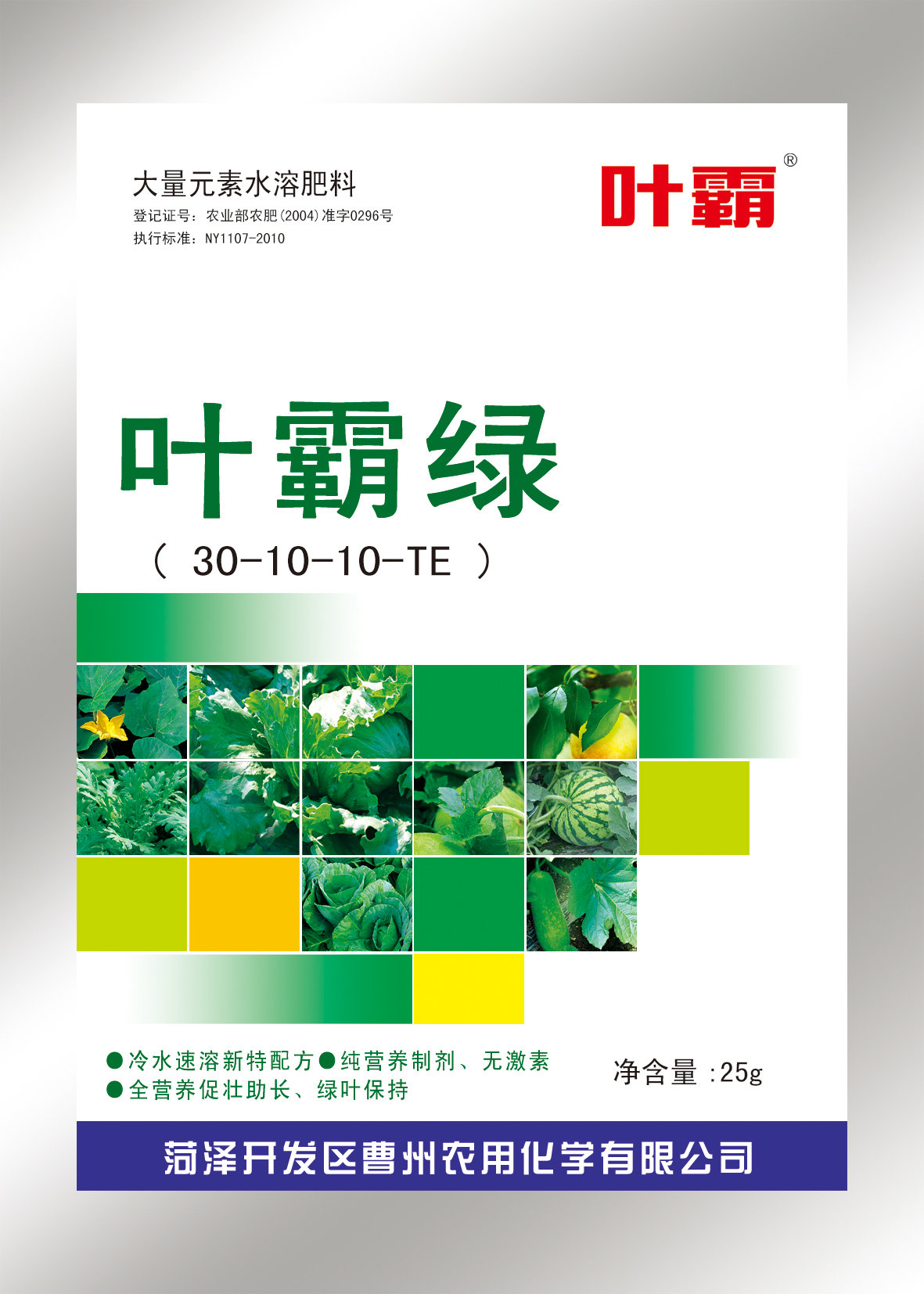 叶霸绿 曹州 全水溶 大量元素 花艳 叶绿 保花 保果 膨果 着色 增甜 叶面肥 滴灌肥 氮磷钾微量元素 果树蔬菜花卉大田通用25g*50包/盒