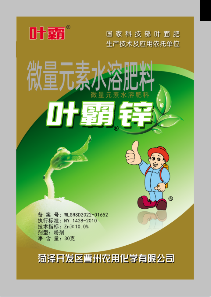 叶霸锌 曹州 锌肥 全水溶 微量元素 花艳 叶绿 保花 保果 膨果 着色 增甜 叶面肥 氮磷钾微量元素 果树蔬菜花卉大田通用30g*20包/袋