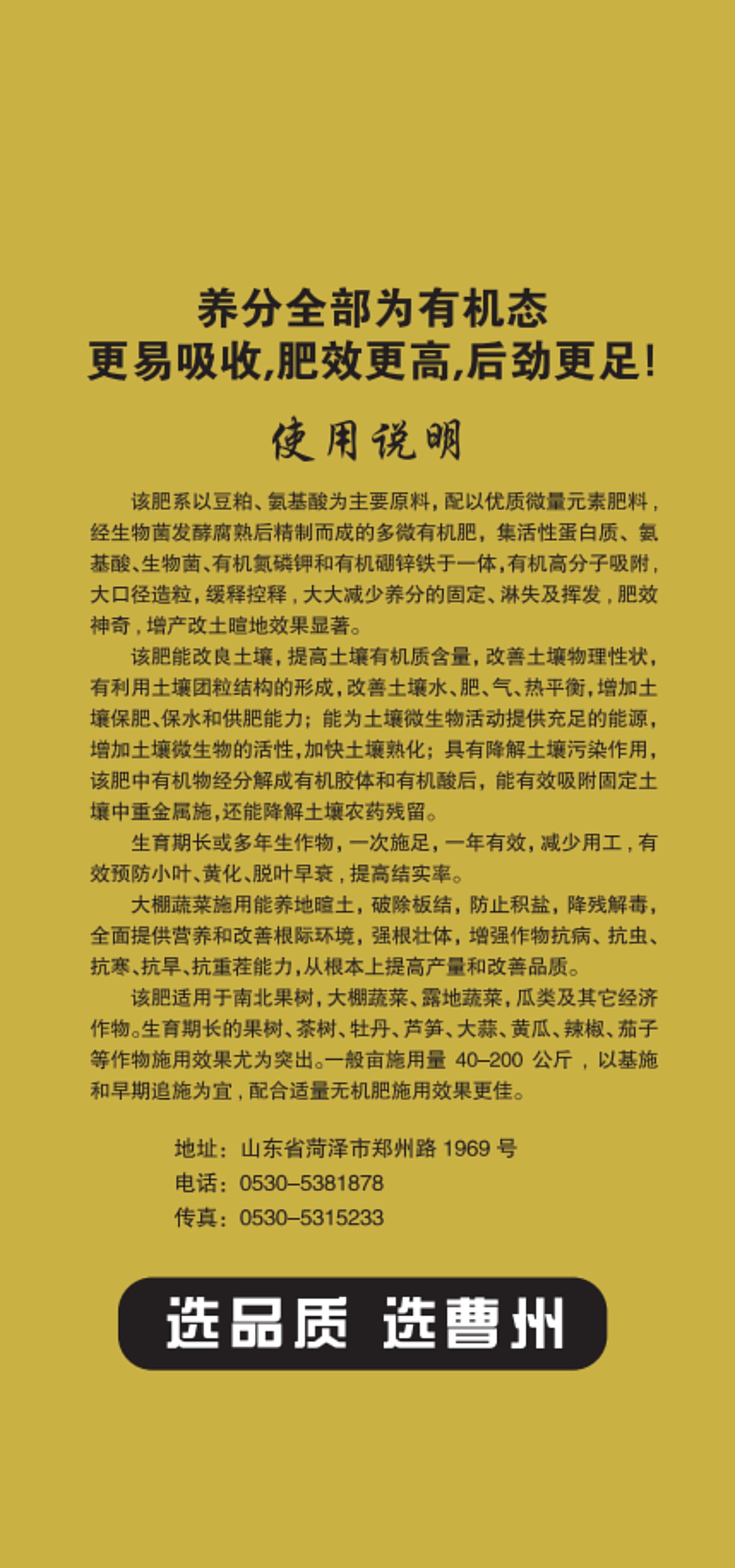 商品名称:豆粕有机肥多微缓释型