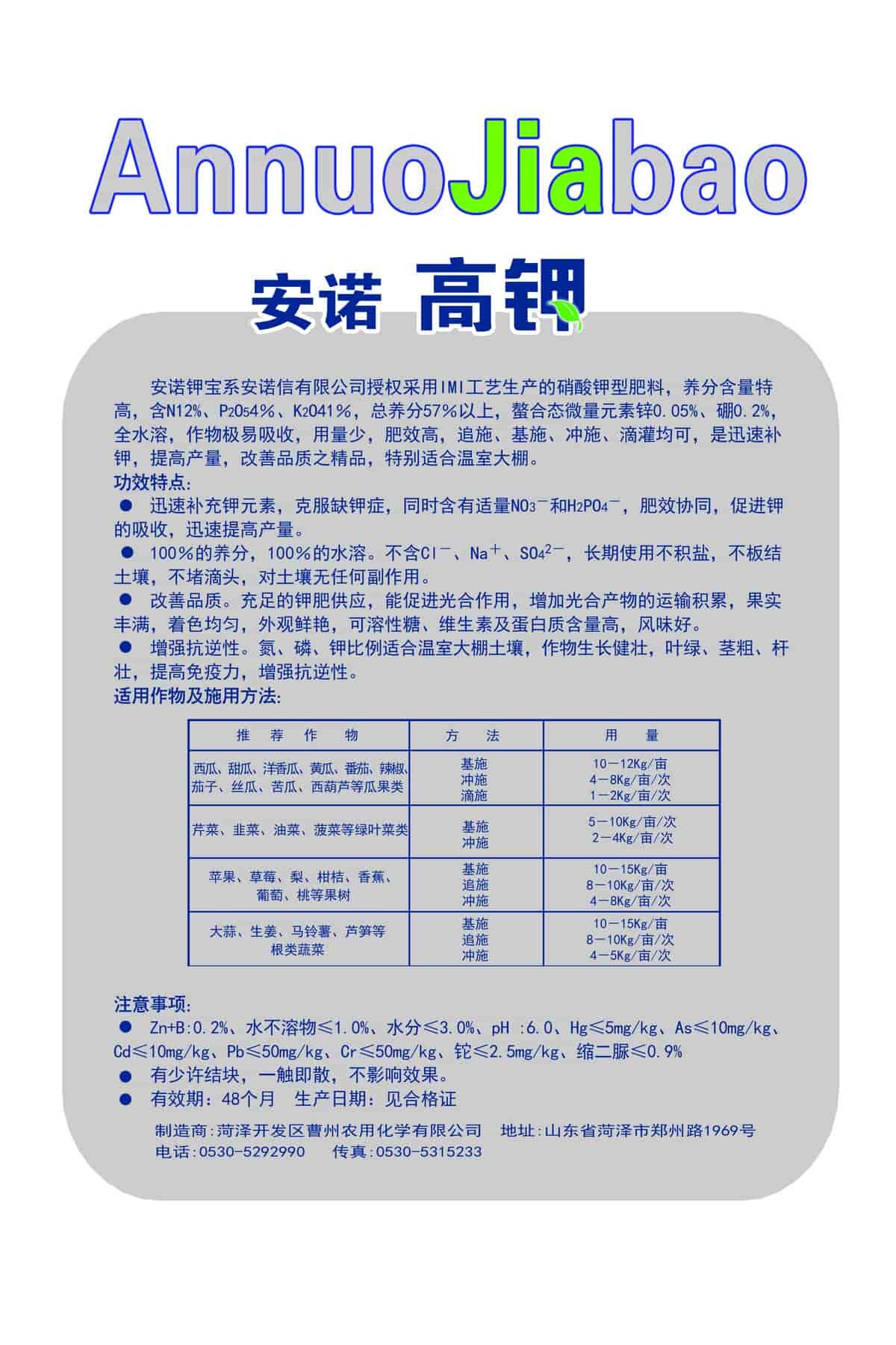 商品名称:安诺高钾