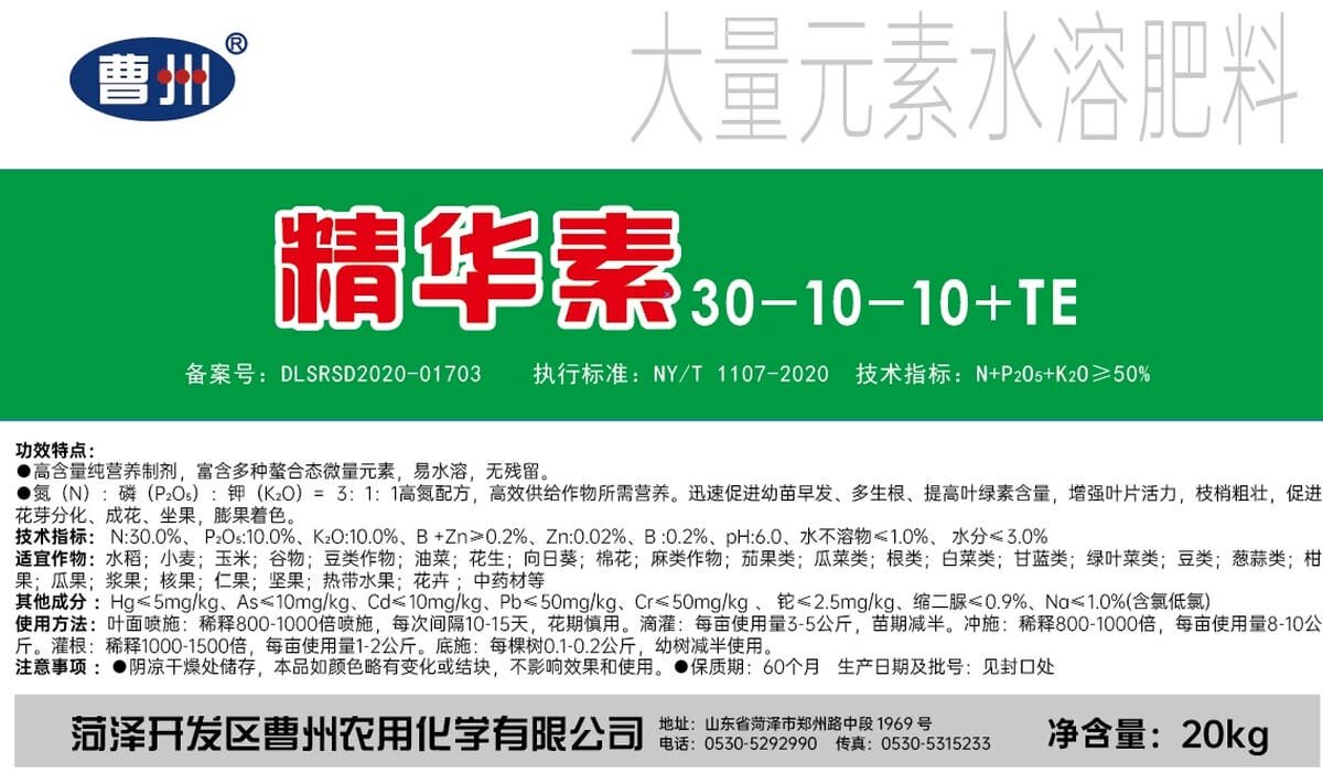 精华素2号30-10-10硫基 大量元素水溶肥 固体冲施肥 20kg/袋